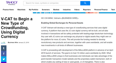 ベトナムで取引所として近々稼働間近のV-Catが世界的な経済紙に続々掲載されています!