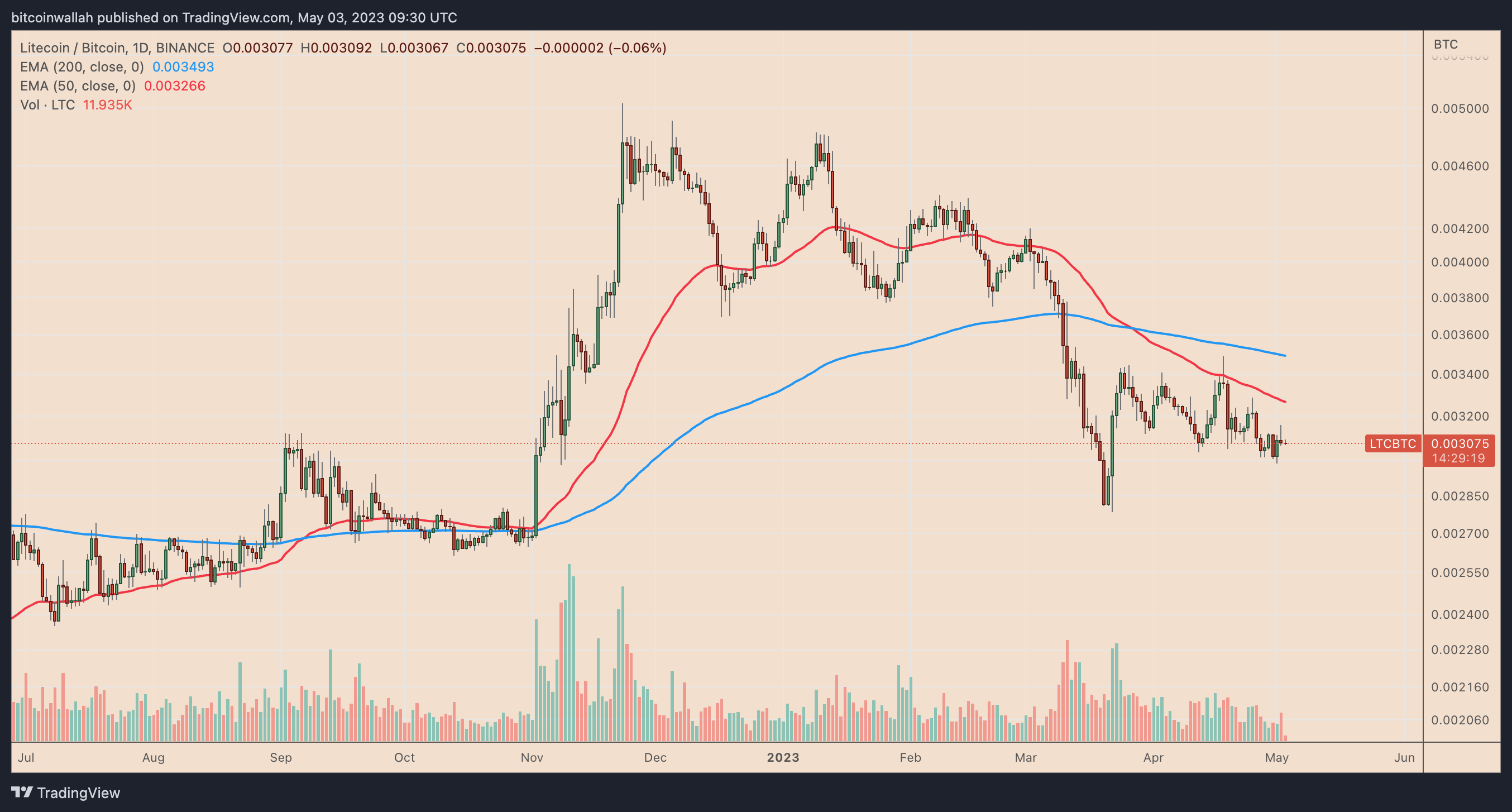 ただし、次回の半減期後には、LTC/BTCが大幅に下落する可能性もある。LTC/BTCのテクニカル分析からも同様のシナリオが示唆されている。