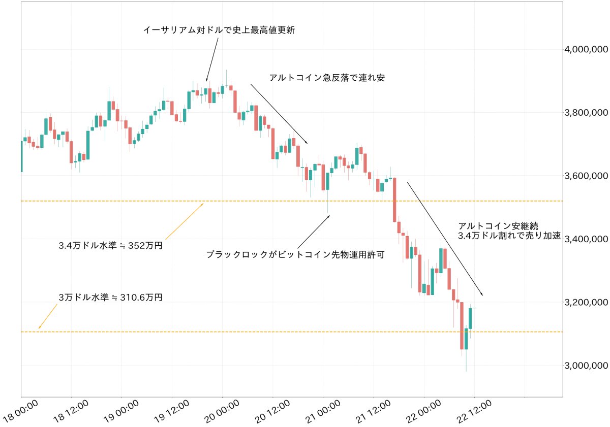 「ビットコイン下降トレンド転換の場合、2万ドル付近までの調整も視野に」bitbank寄稿の仮想通貨週次市況と各金融市場の騰落率
