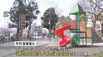 警視庁によりますと、男性は公園でネコの世話をしていて突然、2人に「俺の女に何してんだ。金を出せ」と因縁を付けられました。