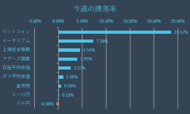 (今週の騰落率は、先週の終値、今週の終値を用いて計算。月初来、年初来についても前の月、年の終値で計算)