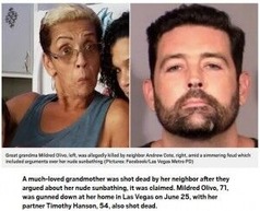 先月26日の午後10時3分頃、米ネバダ州クラーク郡ラスベガスのある住民から隣人を殺害したと警察に通報があった。警察官が現場に駆けつけると、裏庭でミルドレッド・オリーヴォさん(Mildred Olivo、71)とその友人であるティモシー・ダーネル・ハンソンさん(Timothy Darnell Hanson、54)の遺体が発見された。