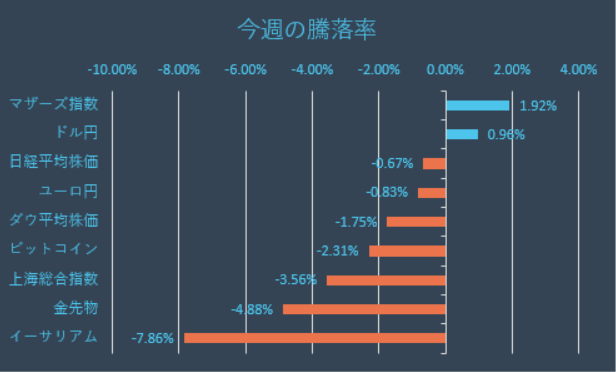 9/25(金)終値時点の週間騰落率は、以下のようになった。