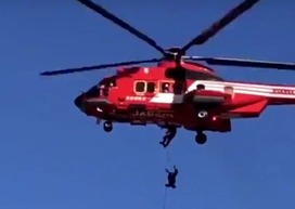 東京消防庁によると、福島県いわき市で消防ヘリから落下したのは、孤立状態で救助を待っていた女性(77)で、隊員は女性側の救助装置のフックをロープに付け忘れたままつり上げていた。