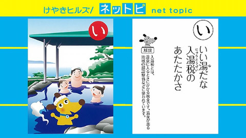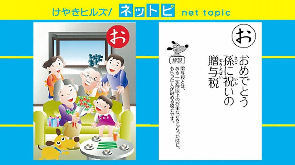 例えば『い』は「いい湯だな 入湯税の あたたかさ」、『う』は「嬉しそう 酒税を納める お父さん!」、『お』は「おめでとう 孫に祝いの 贈与税」、
