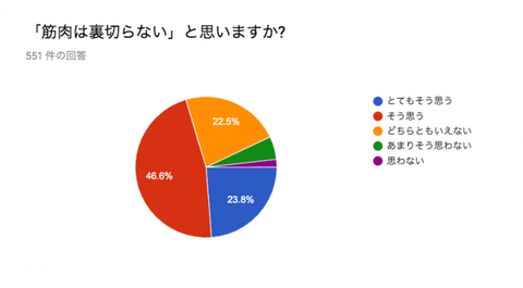調査の結果、「筋肉は裏切らない」という問いに対し、約7割の人が賛成している。