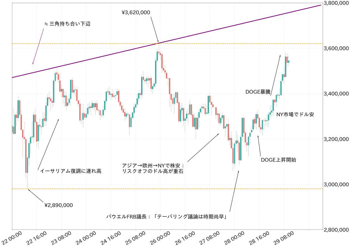 「重要指標が予想以下なら、ビットコイン市場リスクオフ波及の可能性も」bitbank寄稿の仮想通貨週次市況と金融市場の騰落率