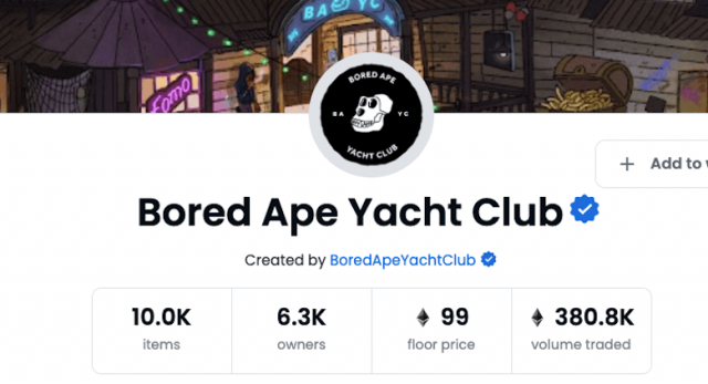 BAYCはYuga Labsが2021年4月にリリースした10,000点のNFTで、0.08ETHの発行価格で販売。その後さまざまな米著名人が相次いでBAYCを購入しSNSのプロフィール画像にすることで人気が急上昇。先日OpenSeaにおけるフロアプライス(最低価格)は100ETHを突破した。執筆時は99ETHのフロアプライスで取引されている。