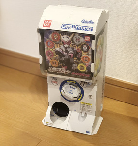 とんなわけで「つまみ(まわすところ)」、「本体」、「出口」などを順番に作り最後にカプセルを入れて完成。思った以上に完成度が高い。手前のつまみを回すとちゃんとカプセルが出てくる。コインを入れたりすることはできないが、それでも十分な再現度だろう。