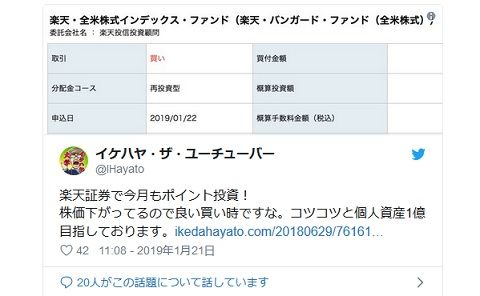 イケハヤが楽天全米株式インデックス買い始めたぞ!米株天井フラグ