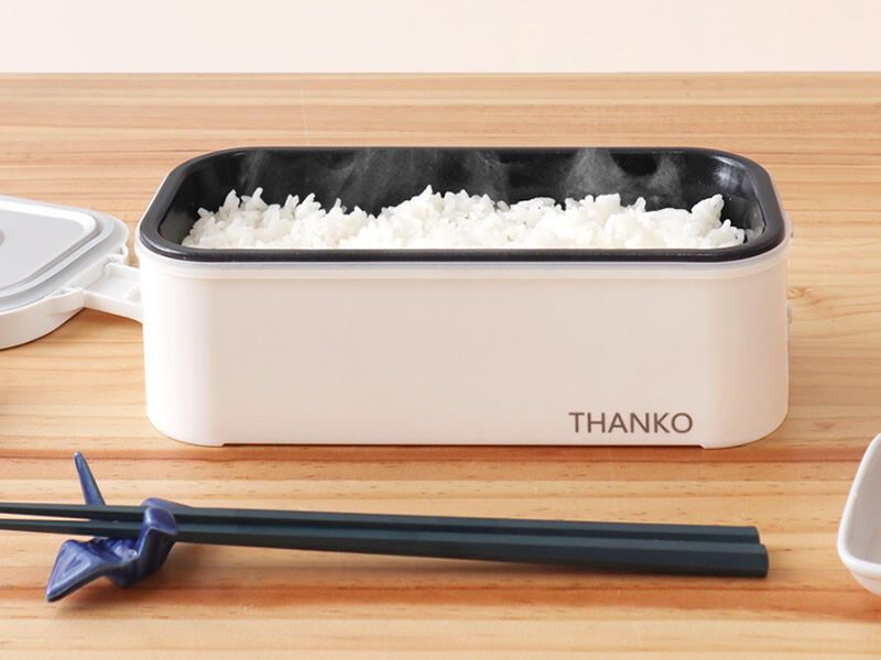 https://www.thanko.jp/shopdetail/000000003453炊飯容量0.5~1.0合に対応する、高速弁当箱炊飯器。”おひとりさま”向けに企画されたオリジナル商品で、0.5合炊飯時では14分の早炊きに対応する(蒸し時間除く)。なお1合は約19分半。