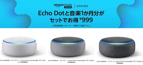 Echo Dotって普段は6000円くらいするし、それがMusic Unlimitedとセットで999円はめちゃくちゃいいと思うお!