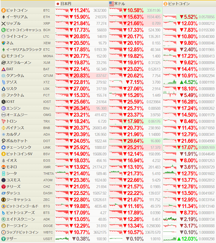 連日の二桁%下落は一気に資産が溶けちゃうお。