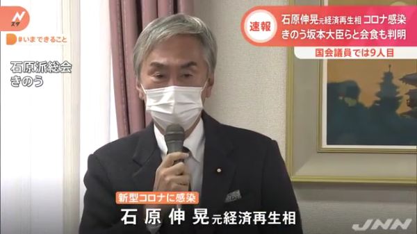 自民党の石原伸晃元幹事長が、新型コロナウイルスに感染したことがわかった。石原氏は昨日、自ら率いる派閥の総会に出席し、普段通り挨拶などを行っていた。(ANNニュース)