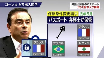 しかし去年5月、元会長にパスポートの携帯義務が生じたため、弁護団が保釈条件の変更を請求し、フランスのパスポート2通のうち1通を鍵が付いたケースに入れた状態で携帯することを裁判所が認めていたことが関係者への取材で新たに分かりました。