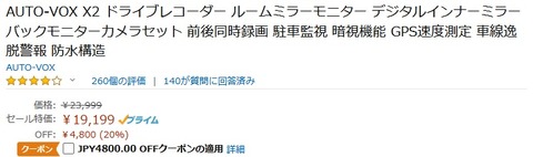 Amazonサイバーマンデーセールにて「AUTO-VOX X2ドライブレコーダー」が激安になっています。タイムセール特価にて20%OFF、そこからさらにクーポンで4800円OFFで市場価格を大幅に下回る値下げ。価格.com最安値も8000円近く更新です。限定30個お一人様1個とのことなので、購入をご検討の方は是非。商品ページ:https://amzn.to/2rrJGzSこちらもお得です:Amazon現金ギフト券チャージ最大3.0%還元!
