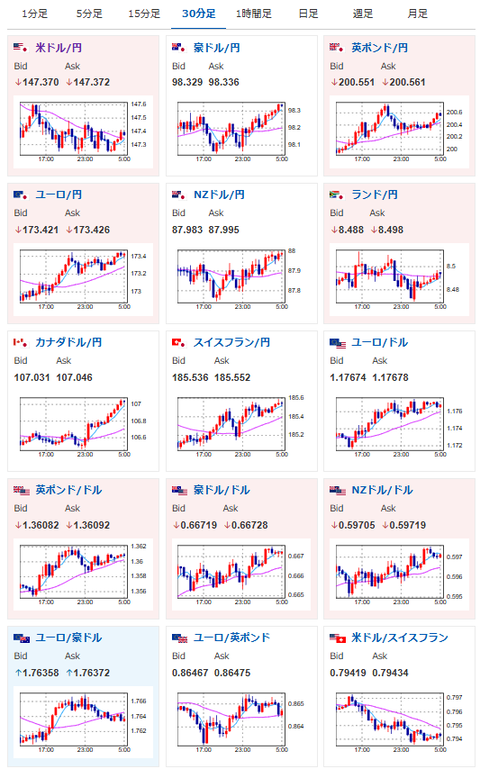 全体的には円安傾向が出ているのだけれど、ドル円だけが円高方向に動いているお。