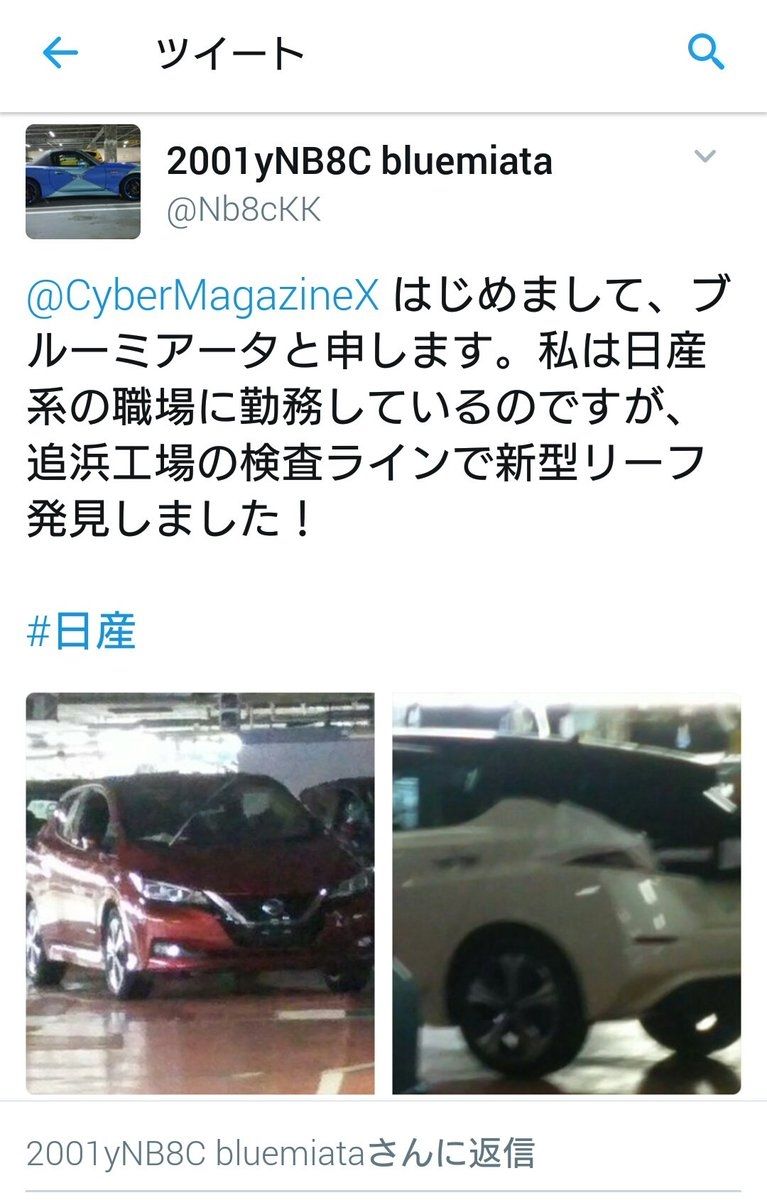公開された画像には新型リーフのサイドのシルエットがあり、