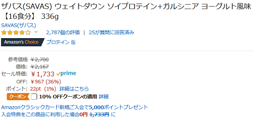AmazonにてSavas缶のウェイトダウンシリーズがタイムセール&クーポン併用で46%OFFです。