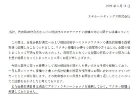 この度は、当社会長杉浦広一および相談役昭子へのコロナワクチンの優先的接種を西尾 市様に依頼したことにつきまして、ワクチン接種をお待ちの西尾市の方々はじめ、全国の皆 さまにとって不快な行為であったこと、日夜尽力されている全国の行政の方々の努力に水 を差す結果となってしまったことに深くお詫び申し上げます。