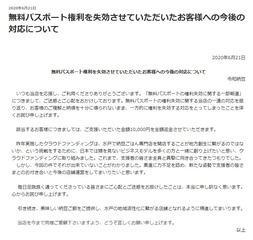 無料パスポート権利を失効させていただいたお客様への今後の対応について