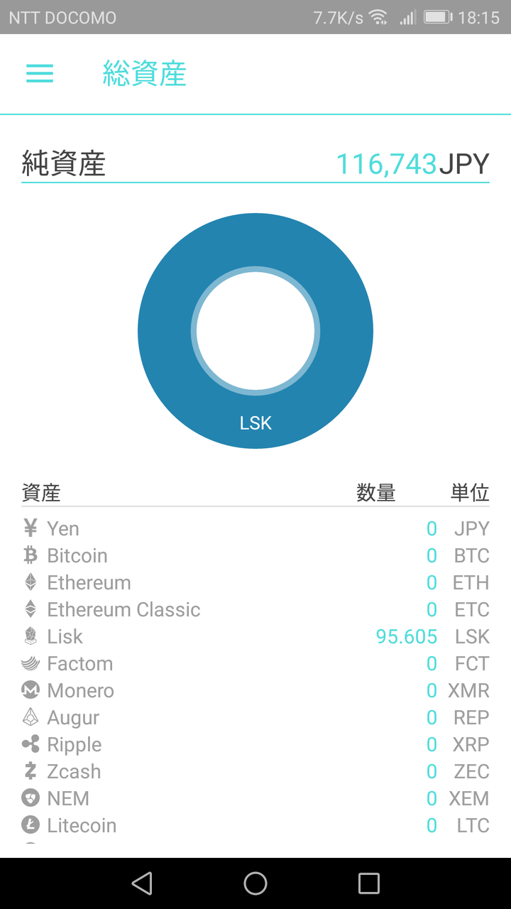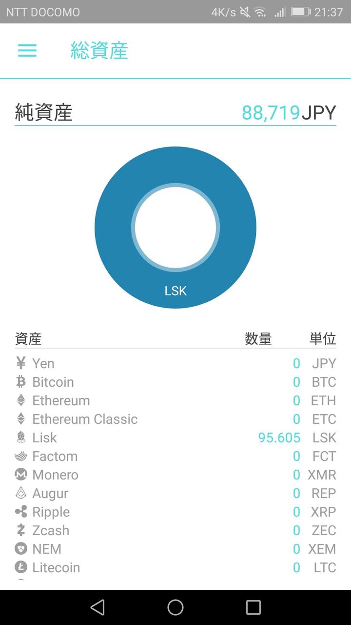 だから昨日も行ったけど一週間前に5万円分のLISKって名前の仮想通貨買っただけだよ
