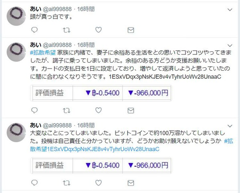 Homepage仮想通貨 masakatsu7733 8年 ago Categories: 仮想通貨 【仮想通貨】悲報!!家庭持ちの癖にビットコインで100万溶かした大物現る 1: 2018/01/30(火)18:46:31 ID:kbI やべぇよやべぇよ… 続きを読む Source: 仮想通貨まとめnews 美人教師が奴隷制度を説明するために黒人生徒を床に寝かせ足で踏みつけ「気持ちいい? 奴隷になってみたい?」→批判殺到 » « 橋本環奈ちゃんって何カップなの????最新画像あり masakatsu7733: