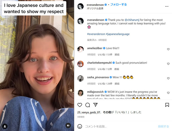 ミラ・ジョヴォヴィッチ、14歳娘の日本語ペラペラ動画にビックリ 「学習数カ月でこの上達ぶりはヤバい」流ちょうな日本語で「日本に行ったときのお勧め教えて」