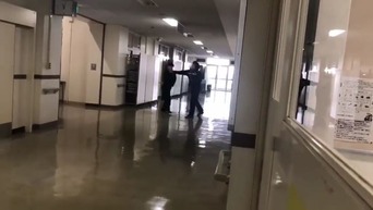 教師と生徒が廊下で口論になっており、突如として教師が生徒の顔を殴打。倒れた生徒を掴み乗りかかるもそれを見ていた生徒らが止めに入った。