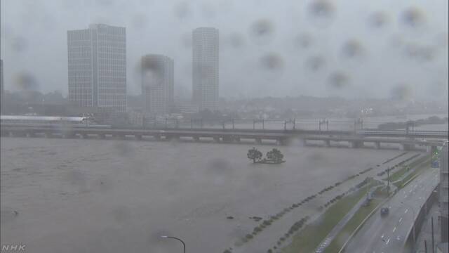 「氾濫危険水位」に達しました。東京の世田谷区など多摩川沿いの地域では、氾濫して浸水するおそれがあり、国土交通省と気象庁は