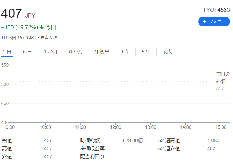 本日アンジェスはS安張り付きだお。