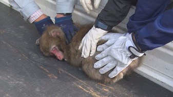 「サルが頭に乗っている。動くと噛み付いて来る」。事の発端はこんな通報でした。