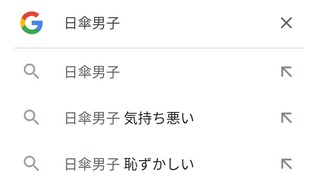 2022年7月26日現在、「日傘男子」と検索した時にグーグルが提案してくるワードの最上位は「気持ち悪い」である。「男性 日傘」でも3番目には「恥ずかしい」が出てくる。マジョリティの意識は変わっていない。