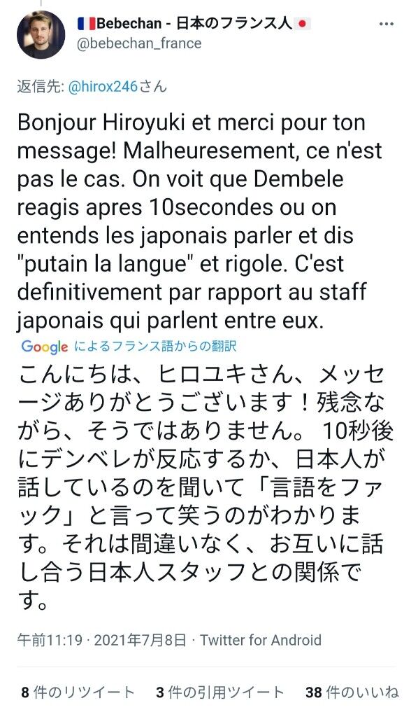 フランス人「残念ながらその可能性はありません。日本人スタッフへ言ってます」