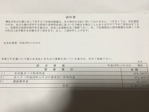 他の会社からもそろそろ督促状くるし闇金合わせて1300万くらい借金ある
