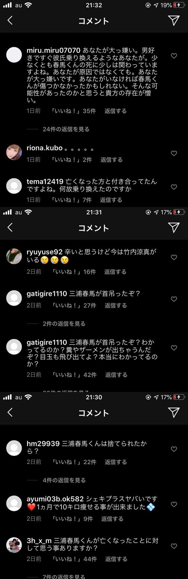 Homepage息抜き masakatsu7733 5年 ago Categories: 息抜き 【悲報】三吉彩花(三浦春馬さんの元カノ)のインスタに誹謗中傷コメントが大量に書き込まれる 1: 風吹けば名無し 2020/07/24(金) 12:43:39.81 ID:rhKYli3J0 もうこいつら正義云々抜きに自分のストレス発散したいだけやん 続きを読む Source: 芸能人の気になる噂 郵便局の投信ってそんなに悪い? » « 有吉と夏目アナのできちゃった結婚報道とは一体何だったのか masakatsu7733: