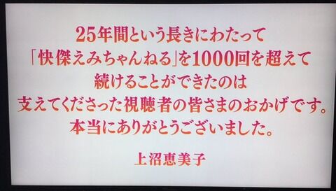 と感謝のテロップが出たが、収録部分では上沼本人が終了に直接言及する場面はなかった。