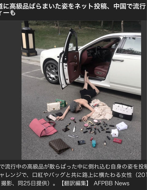 https://i.imgur.com/QvYQube.jpgいかに高級な品物を路上にばら撒いて微博(中国のSNS)にアップロードできるかを競っているらしい