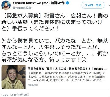 〈同席させていただいたX(仮名、前澤氏のアシスタント)からその合否に関わるような軽率な発言があったことは本人に代わりまして心よりお詫びします。