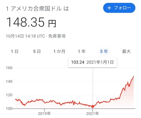 俺も1ドル130円くらいまでで日銀が止めるか米国が為替操作国と言い始めるかと思っていたんだがな。。。
