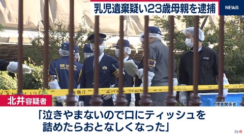 赤ちゃんの口の中にはティッシュが詰められていて、警視庁は殺人の疑いでも調べる方針だ。(ANNニュース)