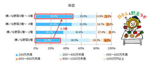 元スレタイが「野菜を食べない人は年収が低い、全く野菜を食べない人は年収が200万未満が多いとの統計」だったから、「野菜を買えないだけ」と思って開いたのだけど違ったみたいだお。