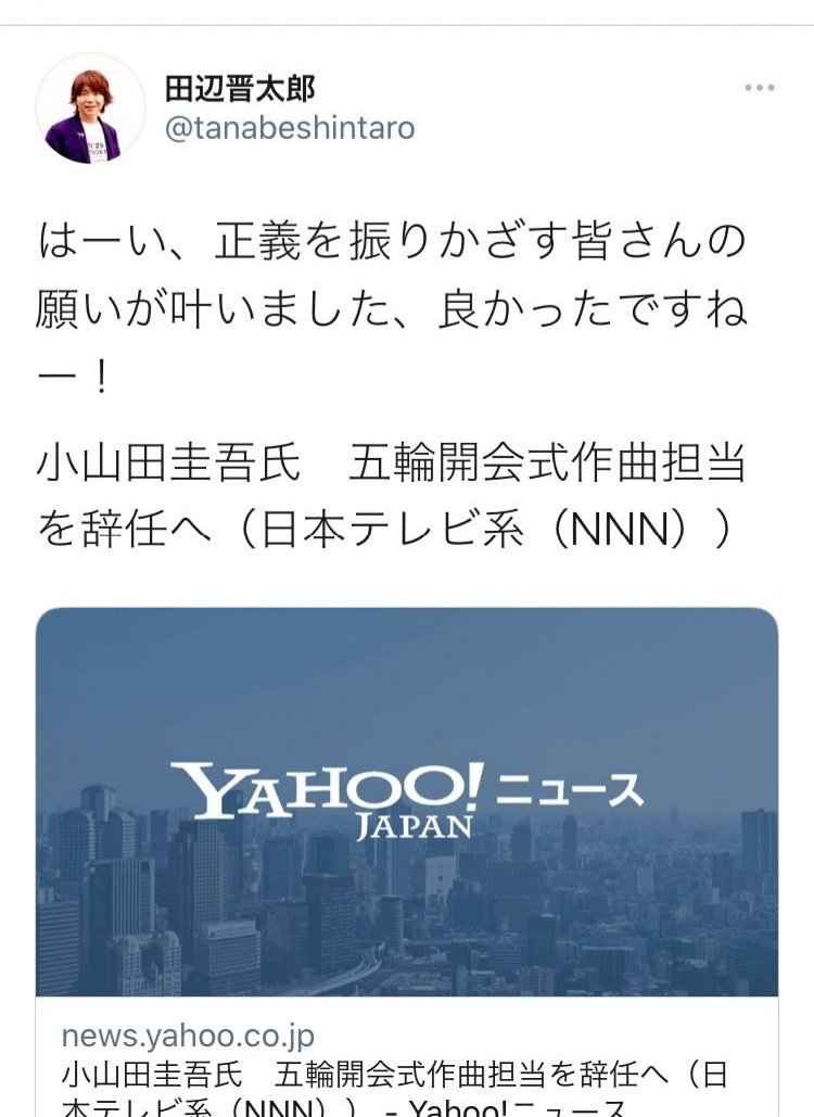 ・小山田圭吾氏に対し従弟の田辺晋太郎氏が以下のような発言