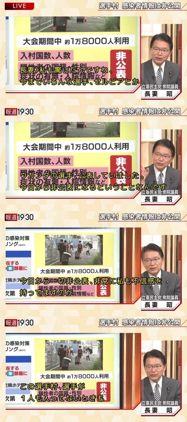 「今日から海外選手の情報は非公表」「濃厚接触者になったときの行動制限は各国の選手団次第」????