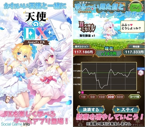 より楽しく体験できるスマートフォン向けゲームアプリ『天使の FX』をリリースした。