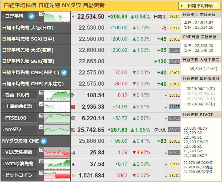 現在は高値から少し下げて200円高くらいだお。