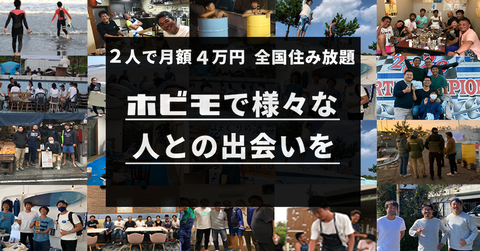 月々の定額で住める多拠点サービス、ホビモは本人確認・反社チェック・契約・決済をWEBシステム化した上で、公式サイトにて新規会員の募集を2021月5月より開始。新型コロナウイルスの感染予防対策として企業のリモートワークが推進される中、密になりづらいアクティビティとしてサーフィン人口が増加している。趣味をしながらリモートワークを希望する首都圏20~40代サーファー向けに、全国のサーフポイント近くの物件を中心に展開し、空き家再利用の迅速化を目指していく。ホビモとは?うまく使えると1日666円で施設利用可能に!趣味の拠点・「住居」「別荘」 「隠れ家」「リモートワークオフィス」に。【サービス内容】ホビモの運営する空き家を活用した住まいに全国、月々の定額で住める多拠点サービス。月々4万円(税別)(滞在最大日数:30日間 人数:2名まで/ 1ヶ月・初期費用/光熱費 0円)の定額で、全国の施設をご利用可能。2人で月額4万円(税込み)なので、実質1名2万円でお使い頂けます。近くのサーフポイントの駐車場が空いてない、オンシーズンの宿泊費用を抑えたい、様々な土地で趣味・人と関わりたい方へはもってこいのサービスです。1年で趣味の拠点100拠点を目指す。【ホビモ拠点マップ:新規オープン拠点含め、全国30拠点へ。】5月のサービス開始時は12拠点ですが、今後、6月にオープン予定の神奈川県逗子市、神奈川県茅ケ崎市、静岡県下田市、高知県阿南市、京都府丹後市、山形県山形市北など加える予定。まずは、都心からアクセスが容易な千葉中心にサーフィン・海釣りの方へ好まれる施設獲得を行う予定です。後々、山・川などの別の趣味(登山・キャンプ・スノボー・ゴルフ・トライアスロン)などの方々に向け、施設を全国から集める予定となっている。