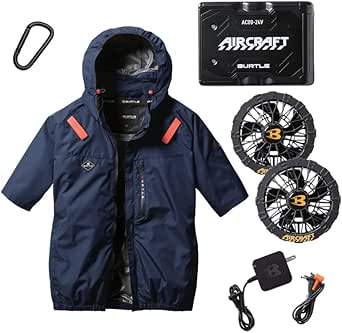 [エアークラフト] すぐ使えるフルセット! BURTLE バートル 2025年 AC2066 半袖ブルゾン サイドファン仕様 オリジナルカラビナ付きアルミ遮熱効果 空調作業服 24V ファンバッテリーセット 作業服 AC09 AC09-1