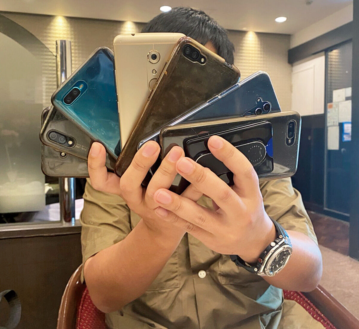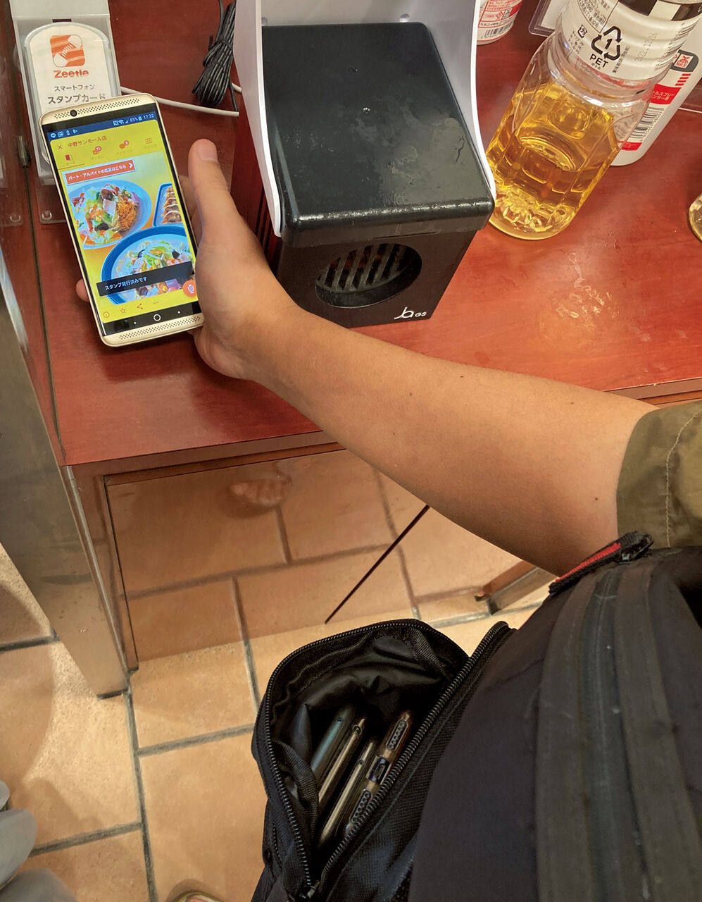 「食費にお金は使ってないです」無職のどぴゅさん(39歳)は、自前のスマホ7台を駆使し、無料サービスをこれでもかと活用している。なかでも愛用してるのが、ジートルというアプリだ。「来店ごとに1ポイントが貯まって、5ポイントで餃子などのサイドメニュー、10ポイントでカレーやどんぶりなどのメインメニューが無料になるクーポンがゲットできます」某チェーン店にてその様子を見せてもらった。専用端末にスマホをかざし、ポイントをゲット。ウエストポーチから次々と計7台のスマホを取り出した。彼はほぼ毎日店へ出向き、こうして1回の来店で一度に7ポイントをゲットしているのだ。「2年前からポイントを集め始めました。5ポイントで食べられるサイドメニューで小腹を満たし、7ポイント得て帰ることを繰り返し、今は無双状態。気が向いたらメインメニューを食べています。地元の店では目をつけられているので、もう行けないです(笑)」