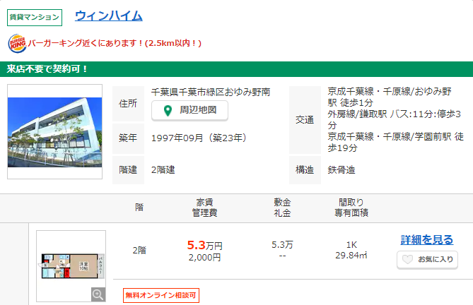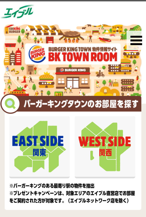 物件ページに行くと「バーガーキング近くにあります!(〇km以内!)」という文面が・・・。